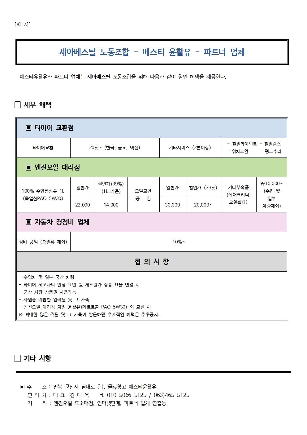 엔진오일 및 타이어 경정비 임직원 및 협력사 할인