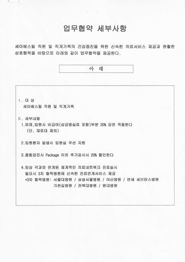 혜택 : 외래, 입원시 비급여(상급병실료 포함)부분 20% 감면 적용