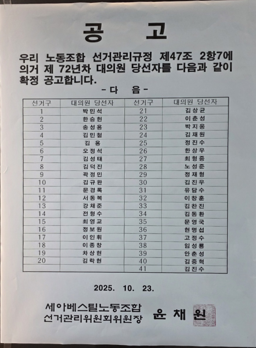 작년 임금협상 통과시킨 대의원들도 보이네요.