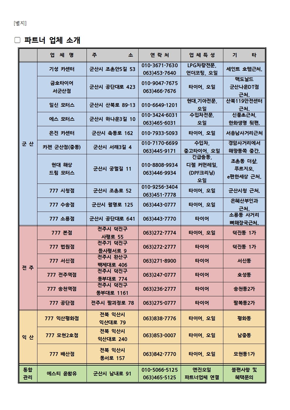 소재지 군산시 남내로 91 물류창고 에스티윤활유 파트너 업체 소개